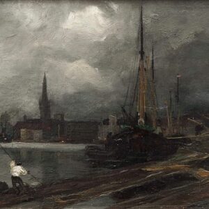 City view with harbor. Study