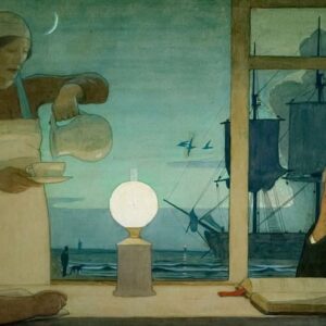 Two Girls by a Table Look out on a Starry Night