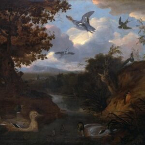 Ducks and Other Birds about a Stream in an Italianate Landscape