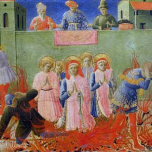 Annalena Altarpiece, pRotella – Saints Cosmas and Damian burning at the stake