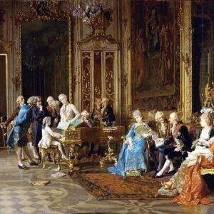 Mozart plays the harpsichord for George III of Hanover