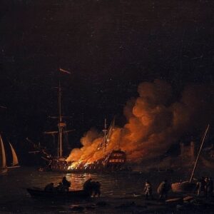 Ship on fire at night