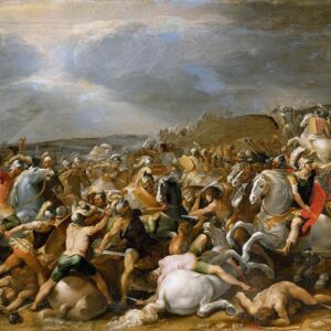 Battle with knights in front of Roman ruins
