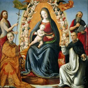 Enthroned Madonna and Child with Saints Jerome, John the Baptist, Lawrence and Dominic