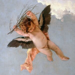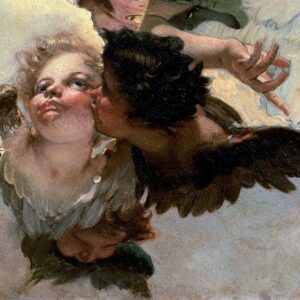 Angel with lily and a putto handing the scapular, detail
