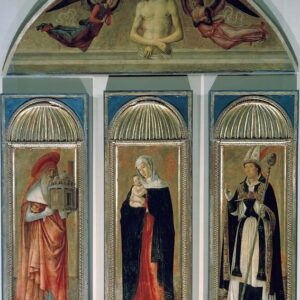 Madonna Triptych (Mary and Child and the Saints Hieronymus and Ubaldus. in the lunette – Man of Sorrows)